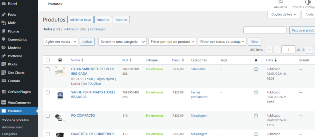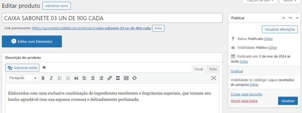 • Duplicar – Essa função é muito importante, pois facilita que você duplique um produto similar e só altere as informações pois ele já vai trazer as Categorias, Tags, Variações já do outro cadastro