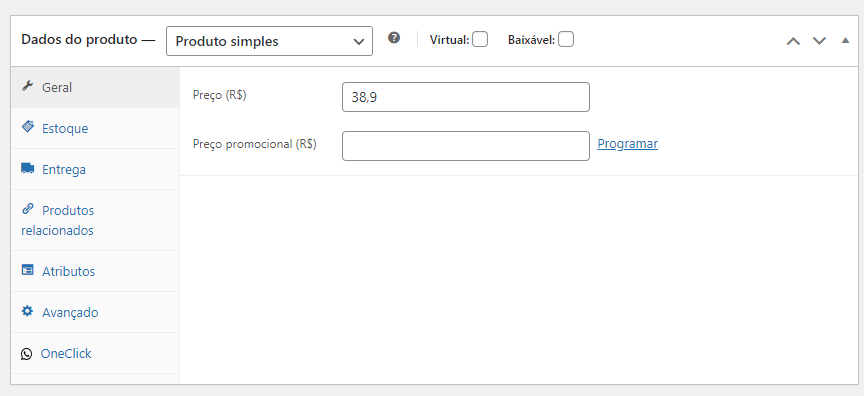 Cadastros de Produtos Simples – Woocommerce