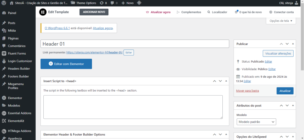 Depois das configurações feitas, basta clicar em “Atualizar” ou “Publicar”, e então editar com o Elementor, normalmente.